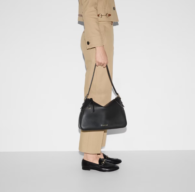 구찌 GG 엠블럼 미디엄 숄더백 블랙 레더 815216