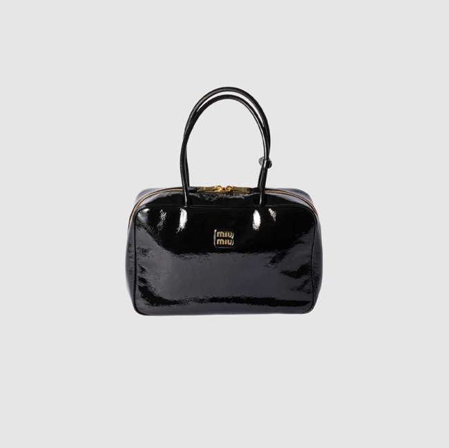미우 미우 나플락 페이턴트 레더 보 백 블랙 5BB117