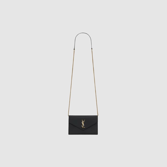 생로랑 카산드라 엔벨로프 체인 월렛 스무스 레더 블랙 743050