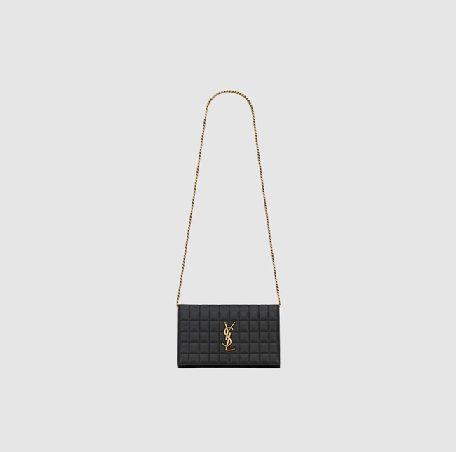 생로랑 카산드라 마틀라세 까레 체인 월렛 퀼티드 레더 블랙 743346
