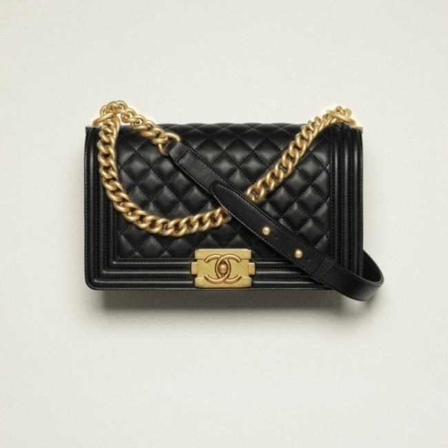 샤넬 보이 샤넬 미디움 플랩백 램스킨 & 골드 메탈 블랙 A67086 (正品皮)