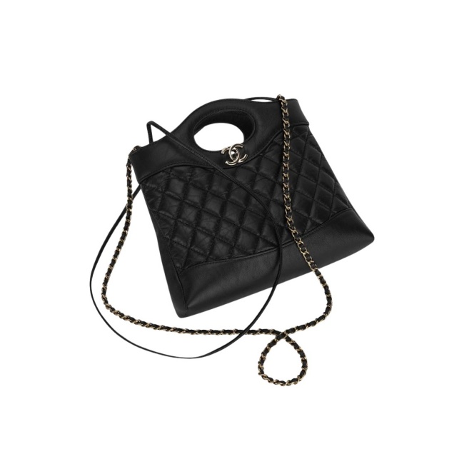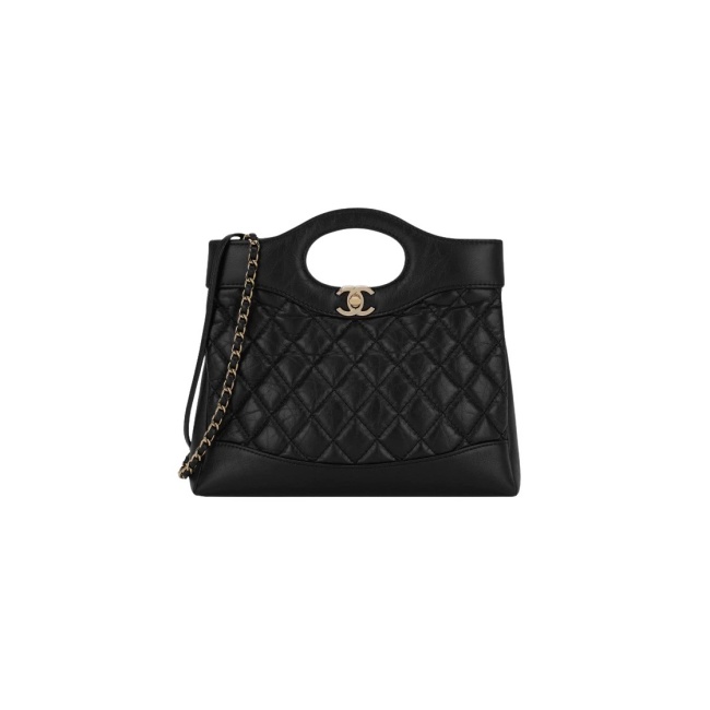 샤넬 31 미니 쇼핑백 샤이니 크럼플드 카프스킨 & 골드 메탈 블랙 AS4133
