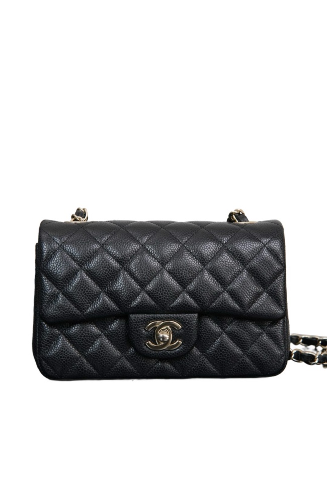 샤넬 미니 플랩백 그레인드 카프스킨 & 골드 메탈 블랙 A69900