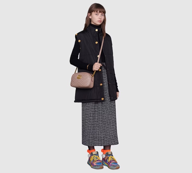 구찌 GG 마몽 마틀라세 스몰 체인 숄더백 더스티 핑크