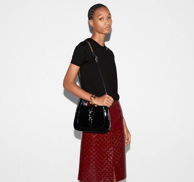 구찌 재키 스몰 숄더백 블랙 페이턴트 레더