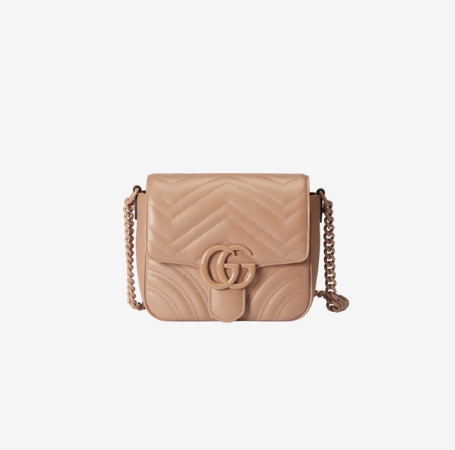 구찌 GG 마몽 마틀라세 미니 숄더백 로즈 핑크 레더