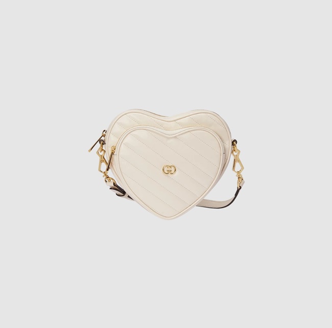 구찌 인터로킹 G 미니 하트 숄더백 화이트 레더