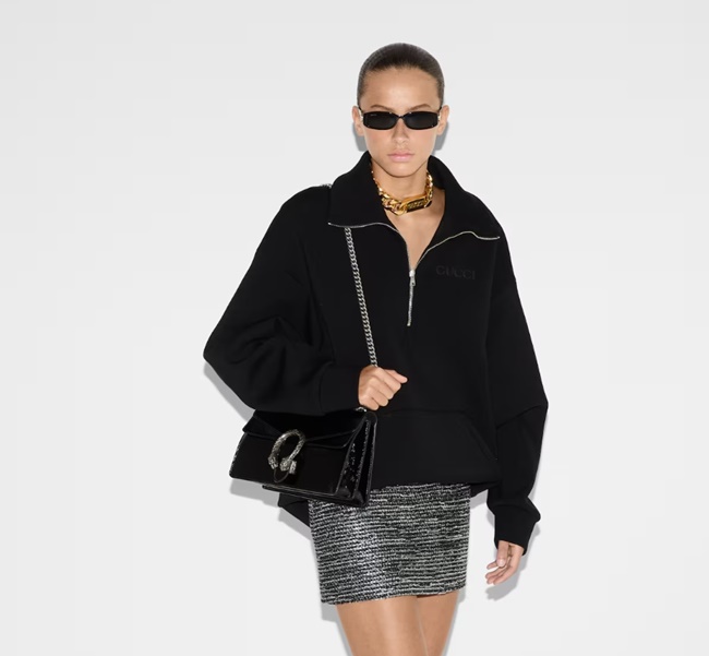 구찌 디오니서스 스몰 숄더백 블랙 페이턴트 레더