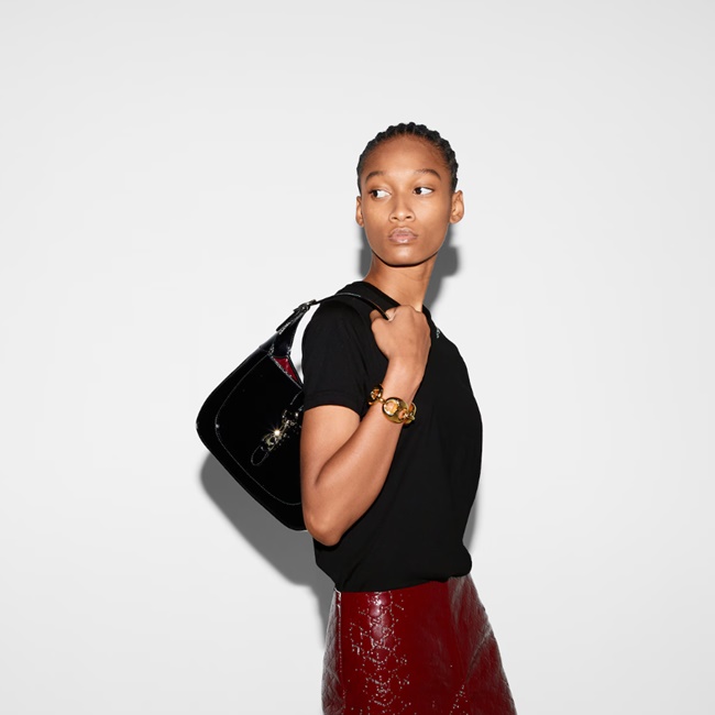 구찌 재키미디엄 숄더백 블랙 페이턴트 레더 782849