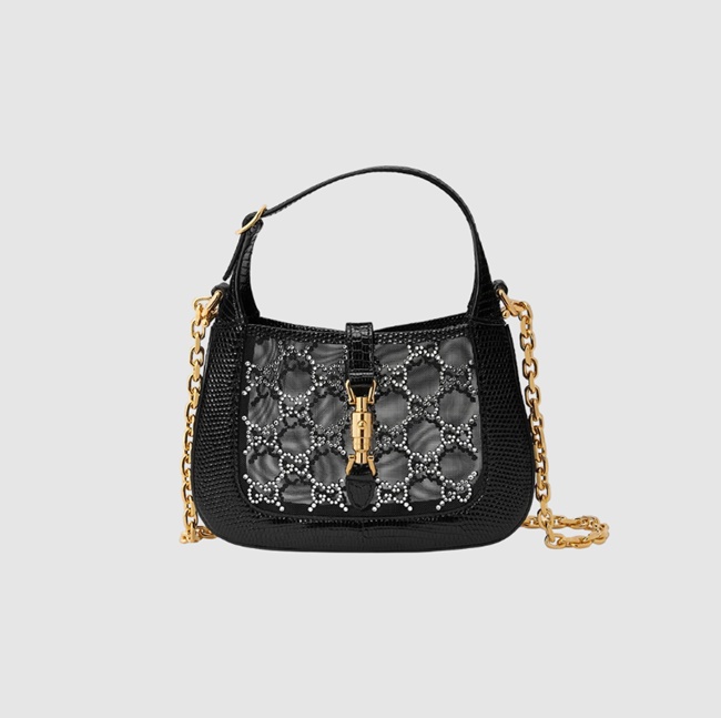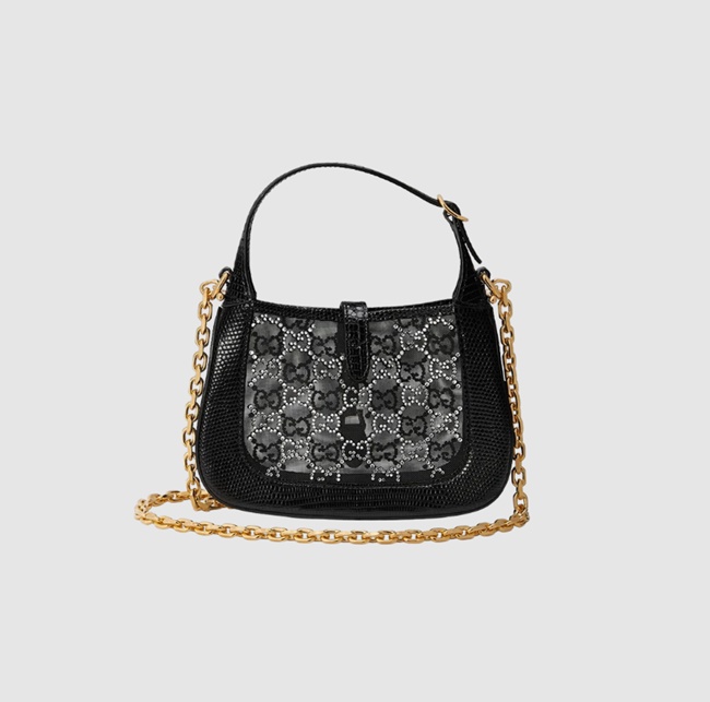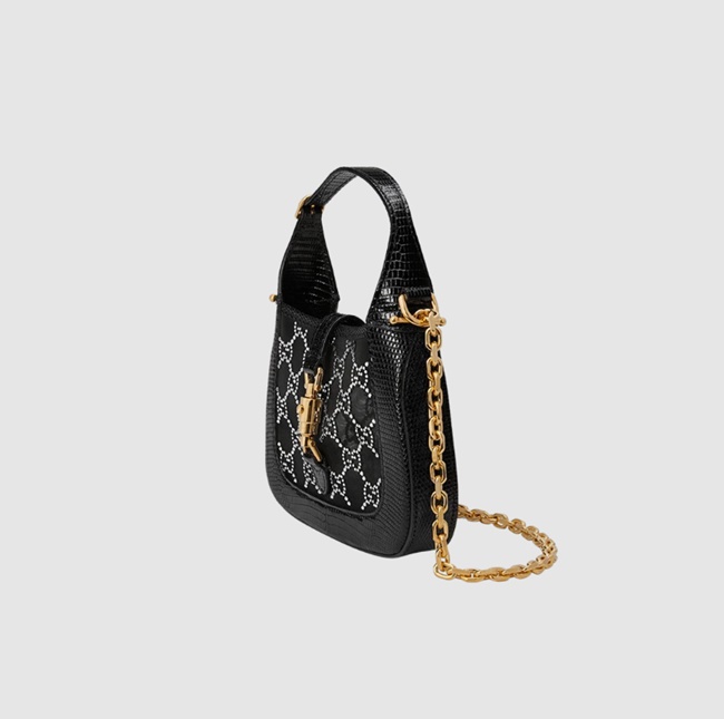 구찌 재키 1961 미니 크리스탈 GG 리자드 백 블랙 677027