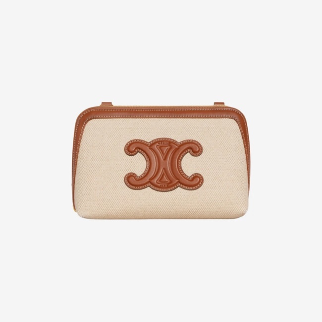 셀린느 텍스타일 카프스킨 클러치 온 체인 레더 트리옹프 내류철 탄