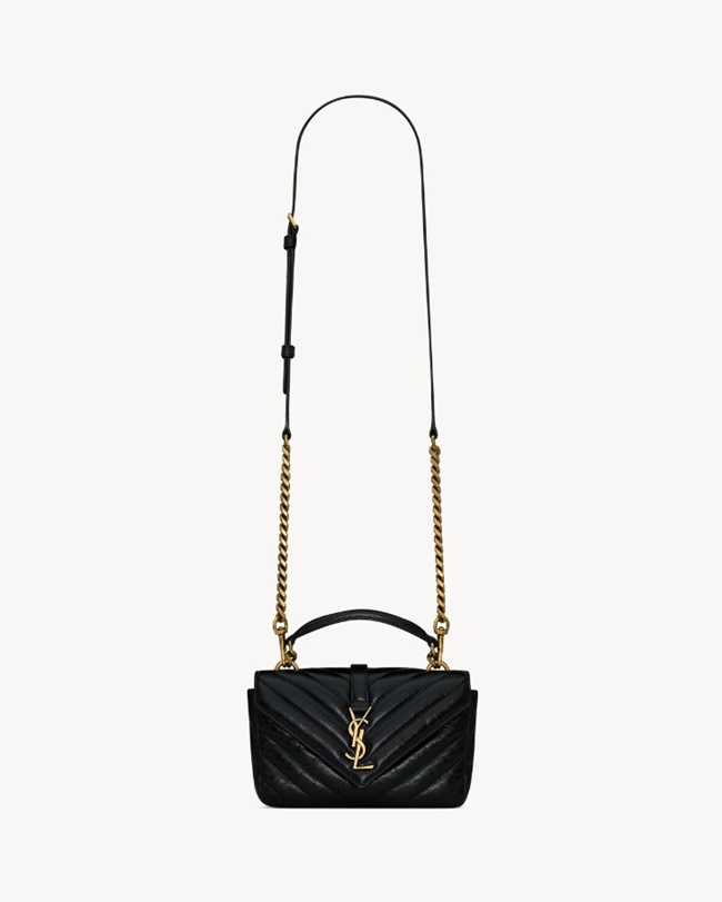 생로랑 샤이니 크래클드 레더 컬리지 미니 체인 백 블랙 779430