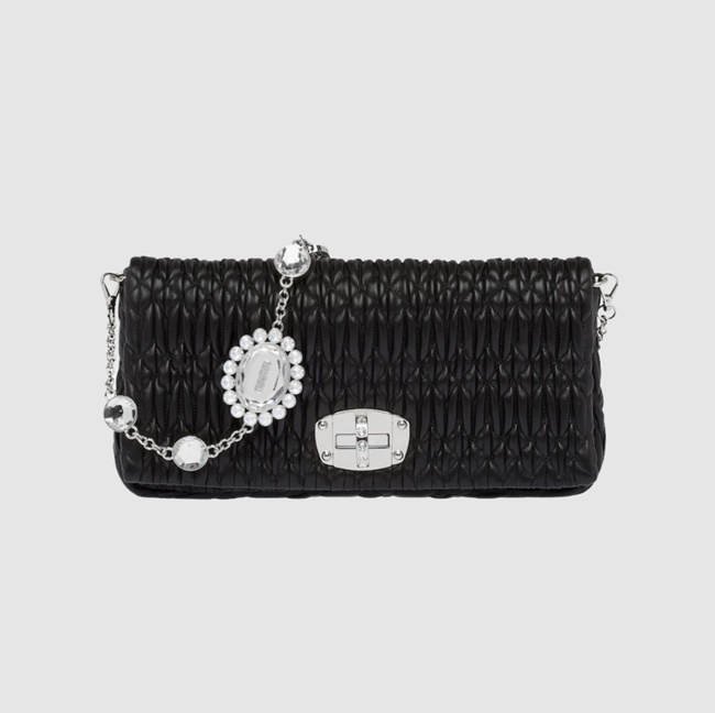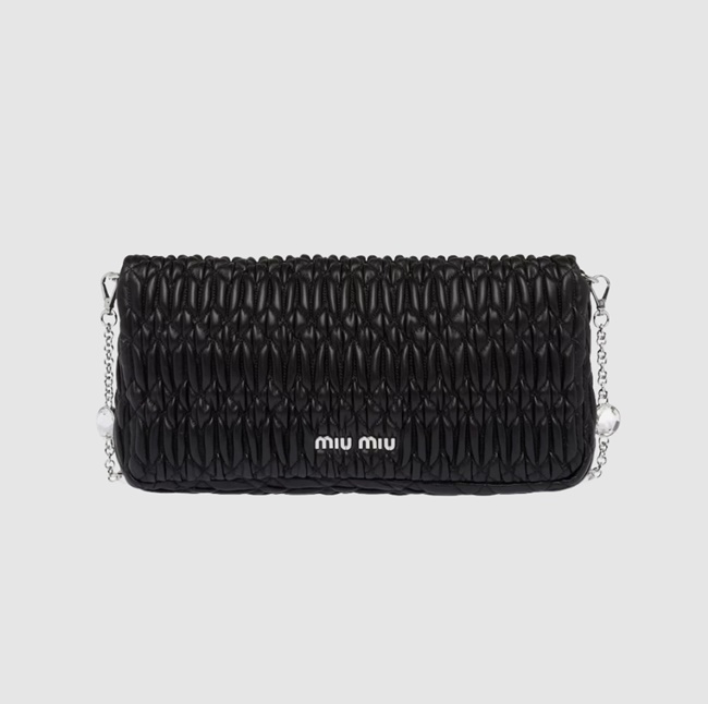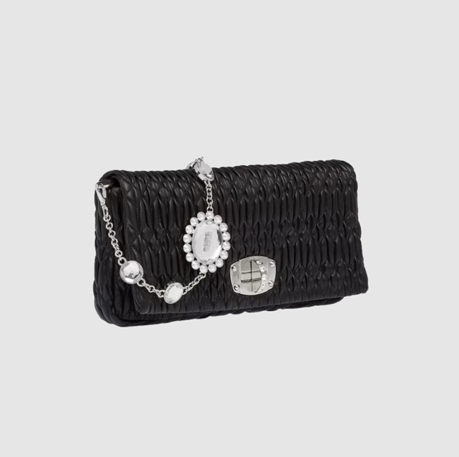 미우 미우 아이코닉 크리스탈 클로케 나파 레더 백 블랙 5BD233