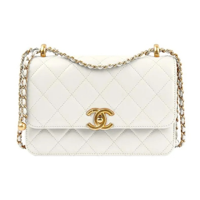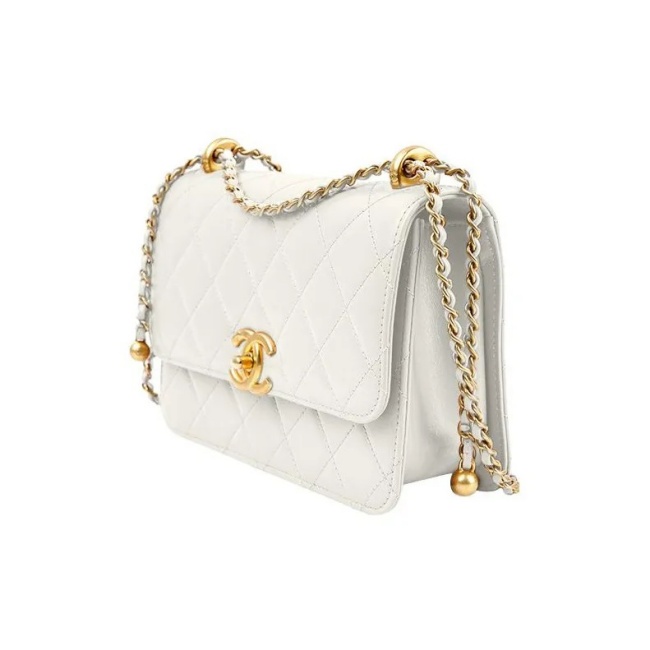 샤넬 스몰 플랩 백 카프스킨 & 골드 메탈 화이트 AS2649 (正品皮)