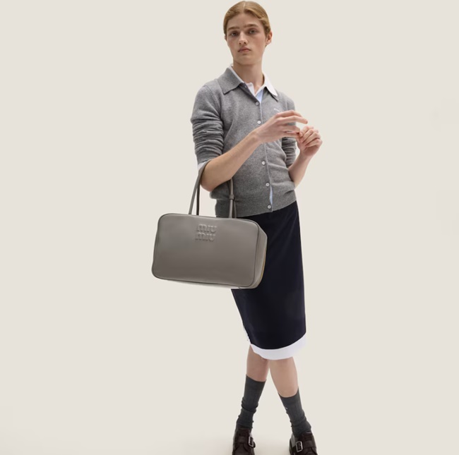 미우 미우 가죽 보 백 클레이 그레이 5BB117