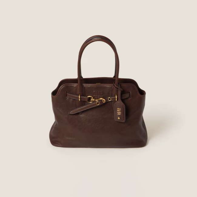 미우 미우 아방뛰르 나파 가죽 미디엄 백 브라운 5BG291