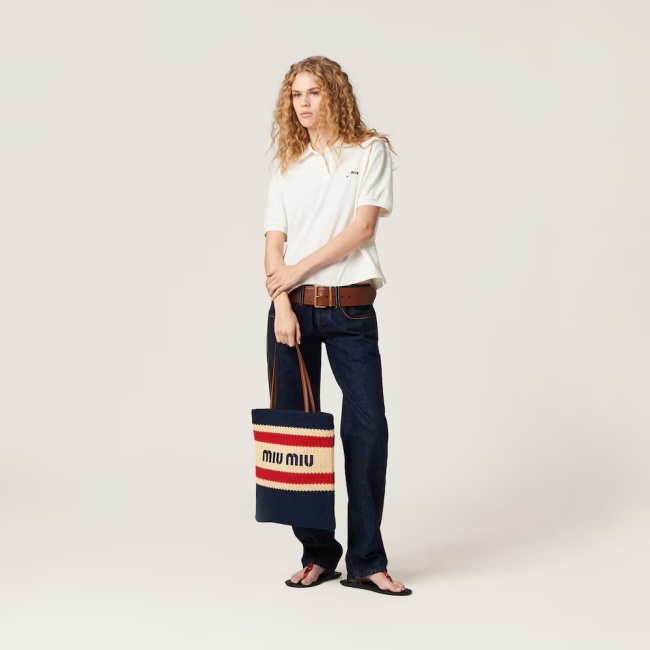 미우 미우 라피아 이펙트 우븐 토트백 내츄럴 블루 5BG248