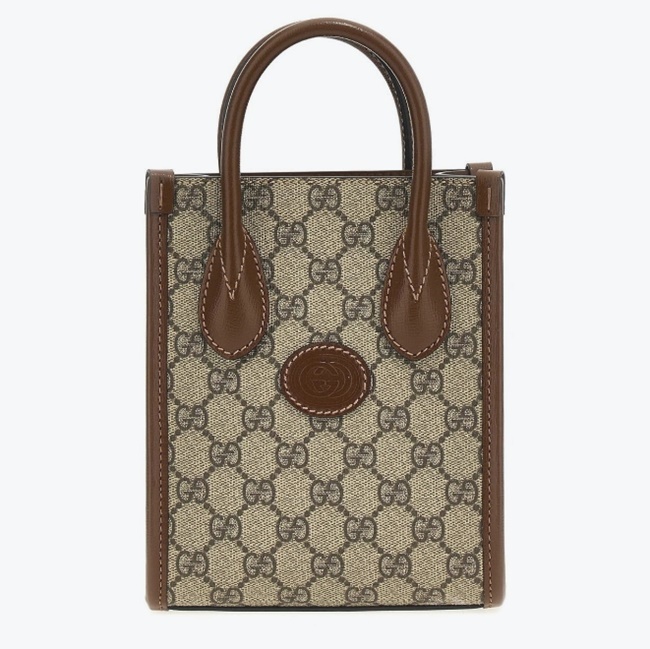 구찌 인터로킹 G 미니 토트백 베이지 에보니 브라운