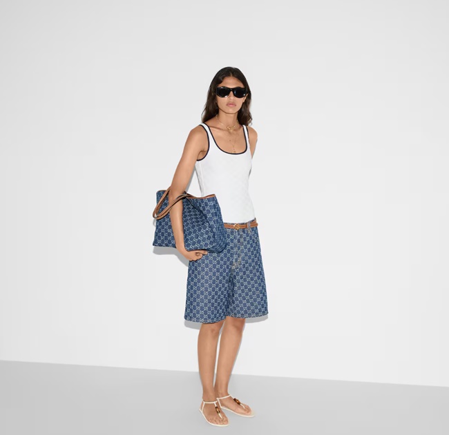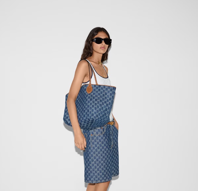 구찌 토티시마 미디엄 토트백 블루 GG 데님 820481