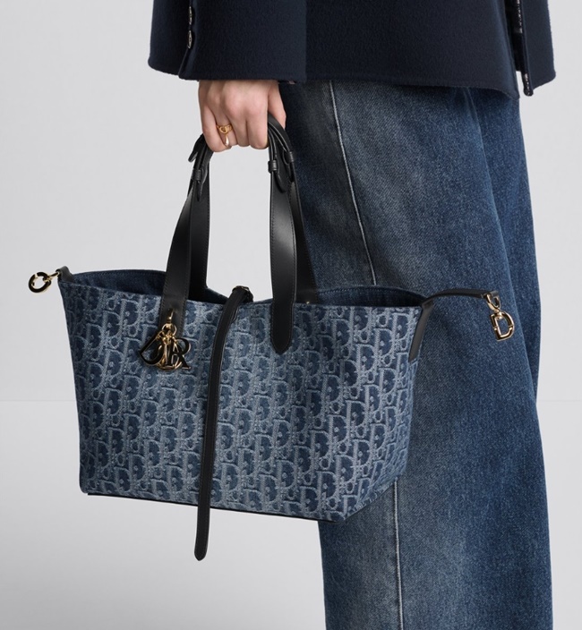 디올 Dior Toujours 미디엄 백 블루 Denim Dior Oblique 자카드