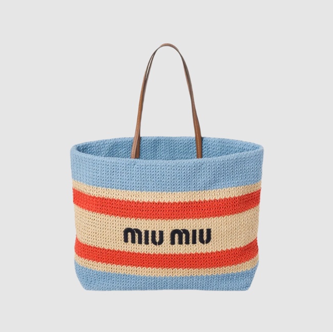 미우 미우 라피아 앤 코튼 토트백 탄 라이트 블루 5BG228