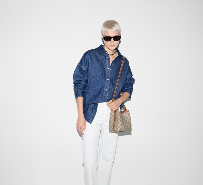 구찌 GG 엠블럼 미니 버킷백 베이지 에보니