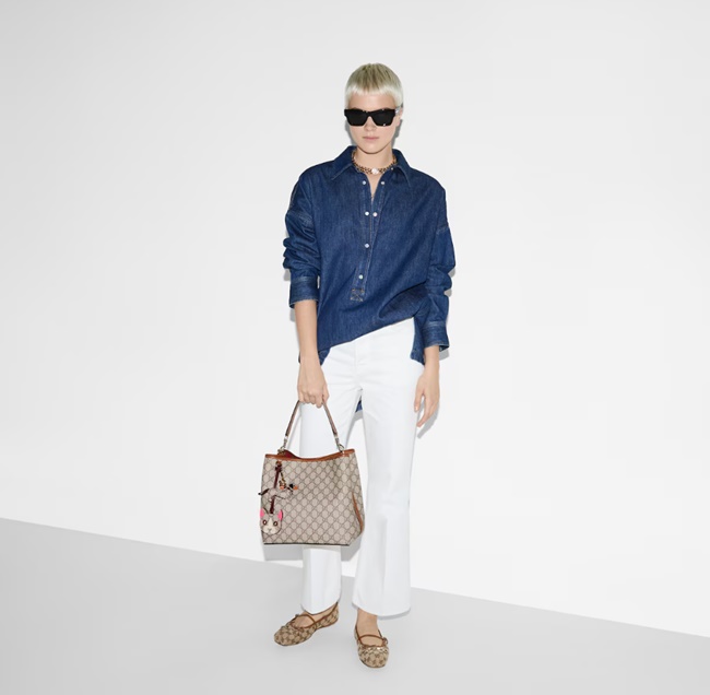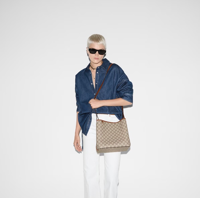 구찌 GG 엠블럼 미디엄 버킷백 베이지 다크브라운 815103