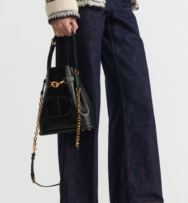 디올 Cest Dior 미디엄 백 블랙 CD 엠보싱 송아지 가죽