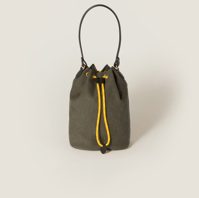 미우 미우 개버딘 파우치 올리브 그린 옐로우 5NR038
