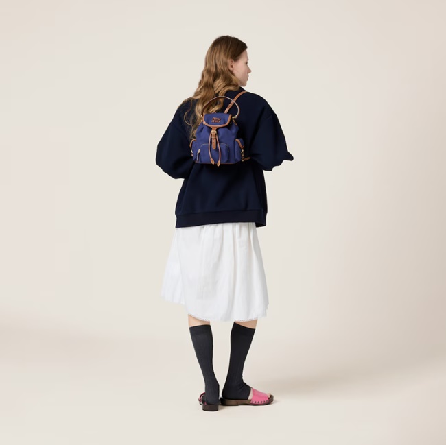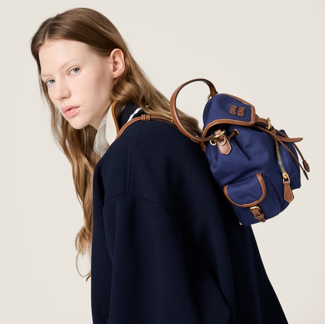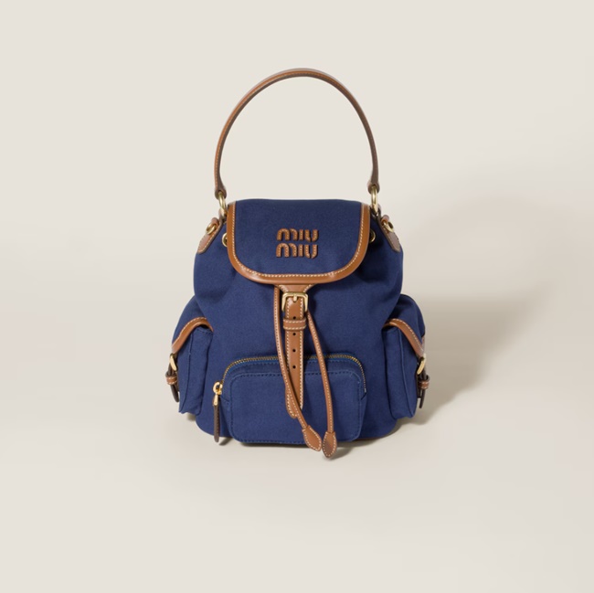 미우 미우 캔버스 앤 레더 백팩 콘플라워 블루 브랜디 5BZ043
