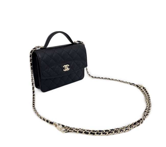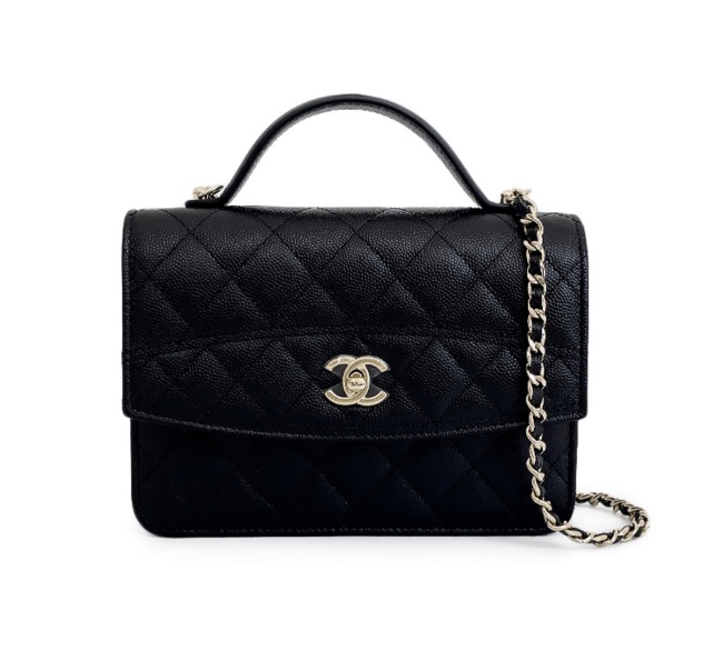 샤넬 탑핸들 미니 백팩블랙 그레인드 카프스킨 & 골드 메탈 블랙 AP4406 (正品皮)