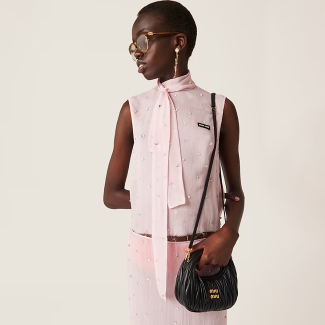 미우 미우 완더 마테라쎄 나파 가죽 호보 미니백 블랙 5BP078