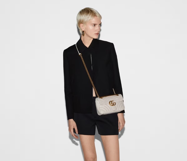 구찌 GG 마몽 마틀라세 미니백 라이트 베이지 레더