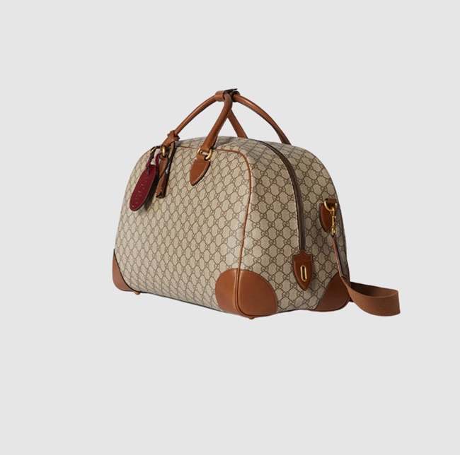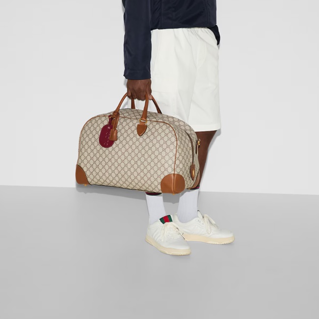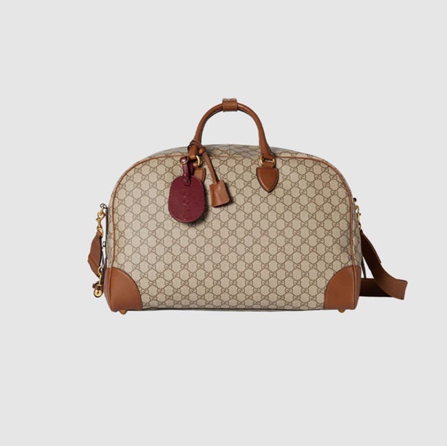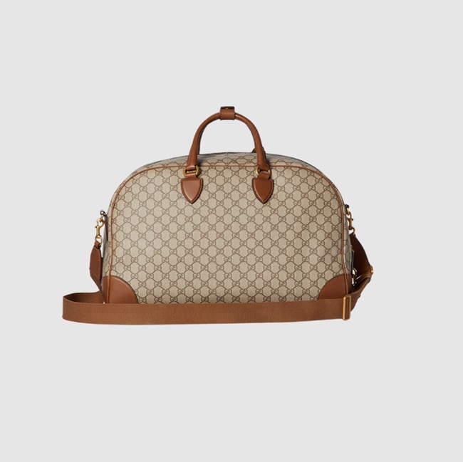 구찌 GG 엠블럼 미디움 더플백 베이지 다크 브라운 821148