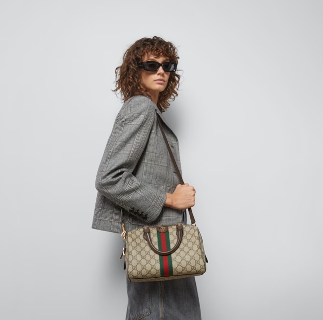 구찌 오피디아 GG 스몰 탑 핸들 백 베이지 에보니 캔버스 772061