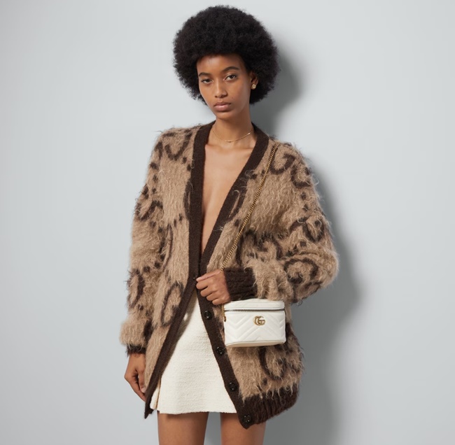 구찌 GG 마몽 미니 탑 핸들백 화이트 마틀라세 쉐브론 레더