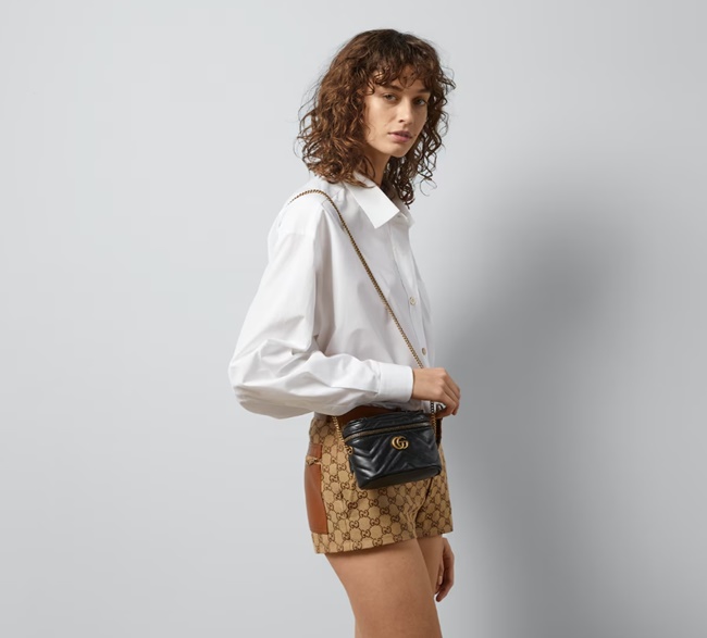 구찌 GG 마몽 미니 탑 핸들백 블랙 마틀라세 쉐브론 레더