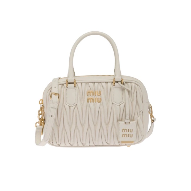 미우 미우 마테라쎄 나파 가죽 탑 핸들백 화이트 5BB124
