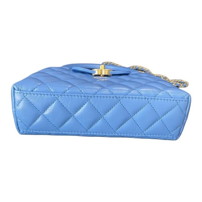 샤넬 미니 쇼핑백 샤이니 빈티지 카프스킨 & 골드 메탈 블루 AS4416