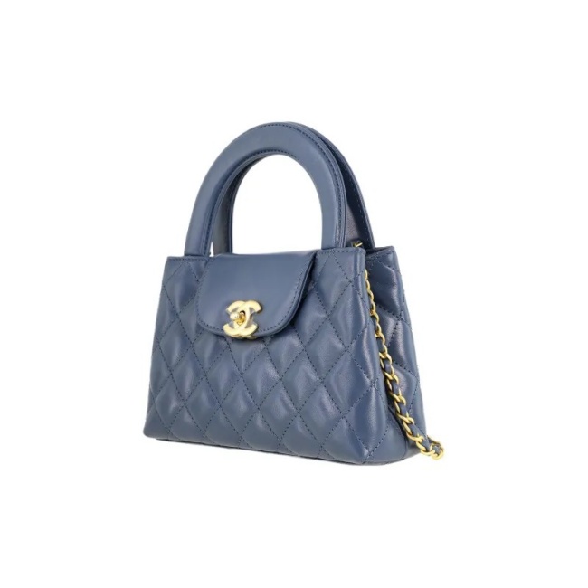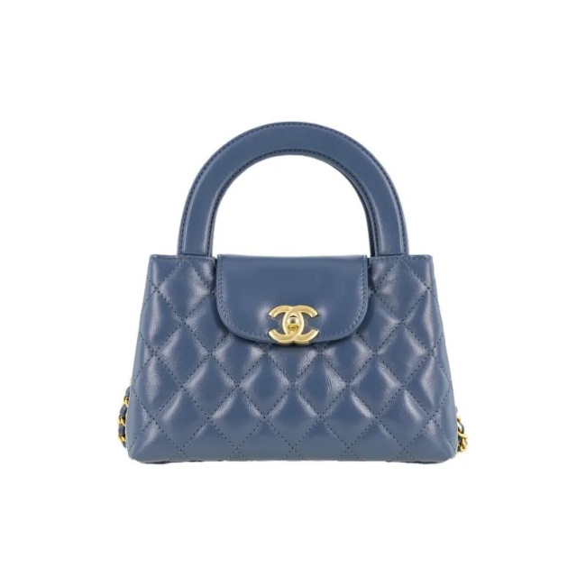 샤넬 미니 쇼핑백 샤이니 빈티지 카프스킨 & 골드 메탈 그레이 블루 AS4416
