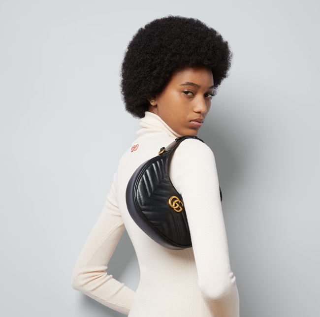 구찌 GG 마몽 하프 문 쉐이프 미니백 블랙 레더