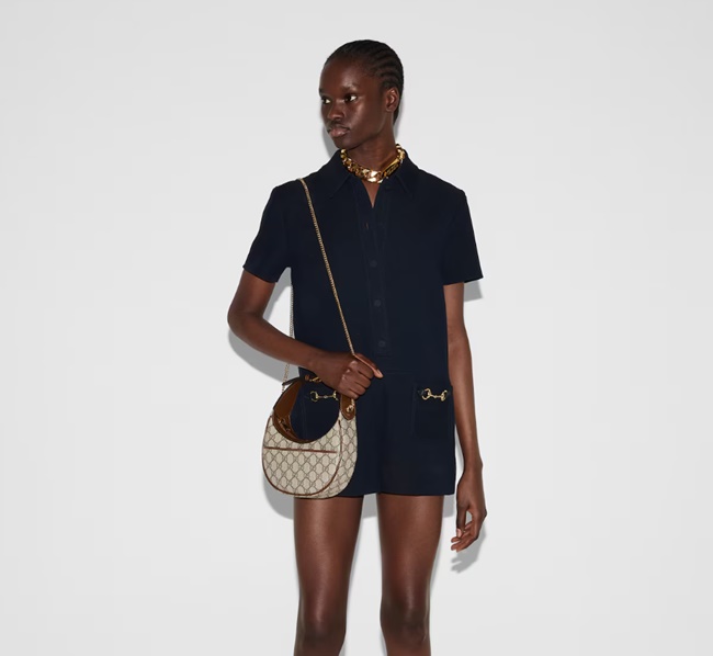 구찌 인터로킹 G 하프문 쉐이프 미니백 베이지 에보니 726843