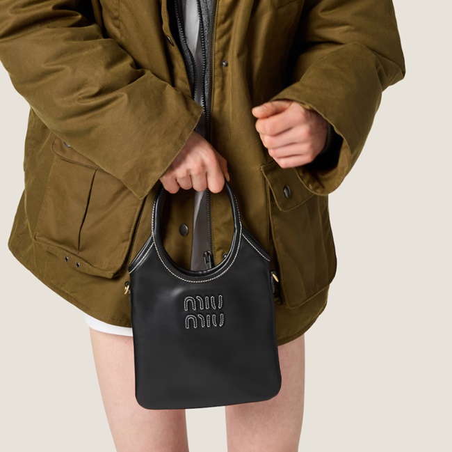 미우 미우 아이비 레더 핸드백 블랙 5BA281