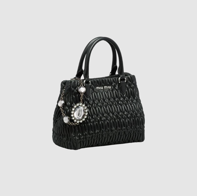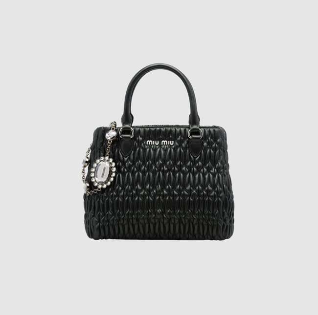 미우 미우 크리스탈 클로케 나파 가죽 핸드백 블랙 5BA067