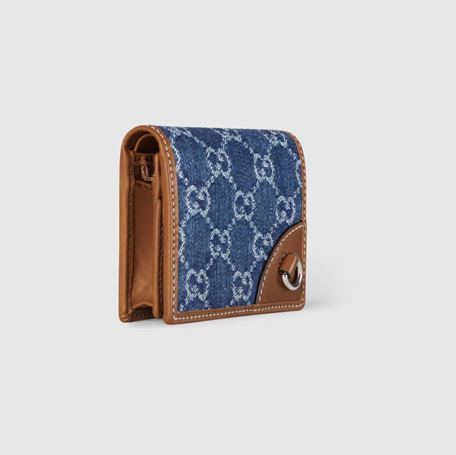 구찌 GG 엠블럼 미니 지갑 블루 아이보리 데님 820692