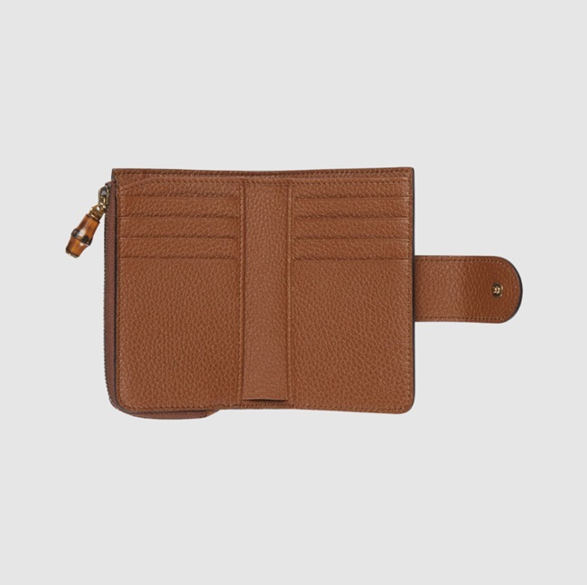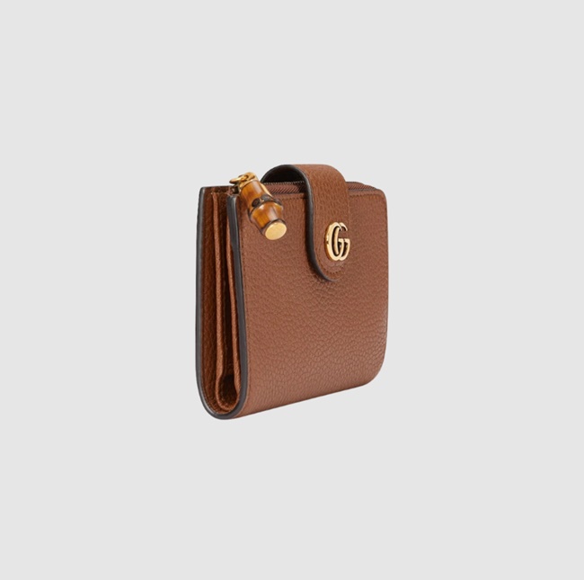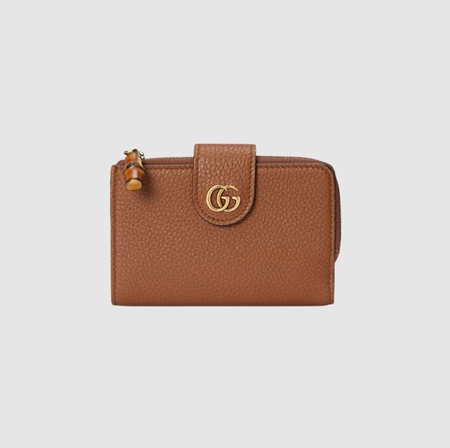 구찌 미디움 더블 G 지갑 뱀부 브라운 레더 739498