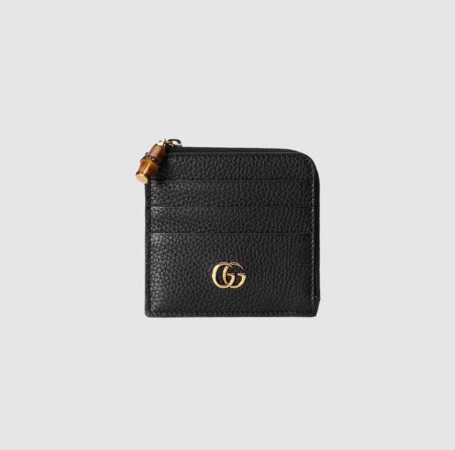 구찌 더블 G 카드 케이스 뱀부 블랙 레더 739497