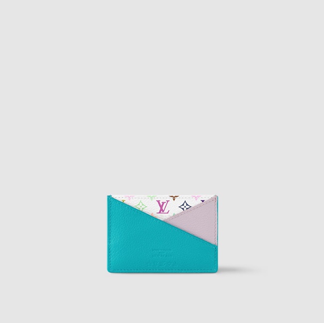 루이비통 x 무라카미 타카시 크리스 크로스 카드 홀더 멀티컬러 카비라 블루 로즈 M14090