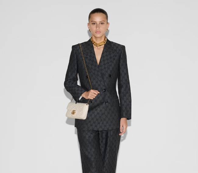 구찌 GG 마몽 미니 카드 케이스 체인 지갑 화이트 레더