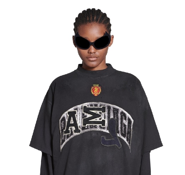 발렌시아가 스커이터 티셔츠 오버사이즈 블랙 페이디드 컬러